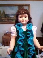 Don’t you just love her?  She is exactly like the Patty Playpal I got for Christmas in 1959.  Unfortunately during a move she was lost.  My wonderful husband replaced her for me in 2004 when Ashton Drake reproduced them. Patty is modeling the Potato Chip Scarf I just finished.