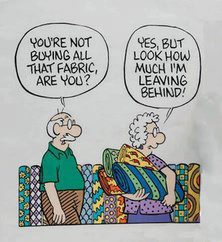 I love this cartoon.  Sound familiar?  I must admit that when my hubby has gone fabric shopping with me he usually asks if I am sure I have enough.  I am one lucky quilter! But then I remember what is waiting for me at home and say yes I’m sure.