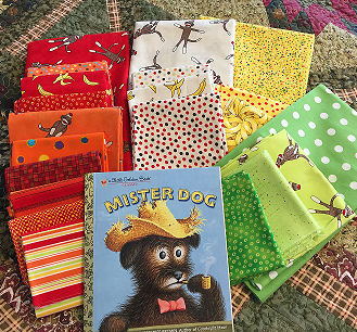 I am participating in Pat Sloan’s Mystery Quilt this year. The name is Children’s Library.  I think it will make a cute quilt for my granddaughter Isabella.  My favorite book when I was a little girl was Mr. Dog.  When I would visit my grandmother, she would read it to me all the time.  I wore the book out.  It literally fell apart.  A few years ago, Gary found it and picked it up for me.  Here’s the picture of the book and the fabrics I will be using for my mystery.